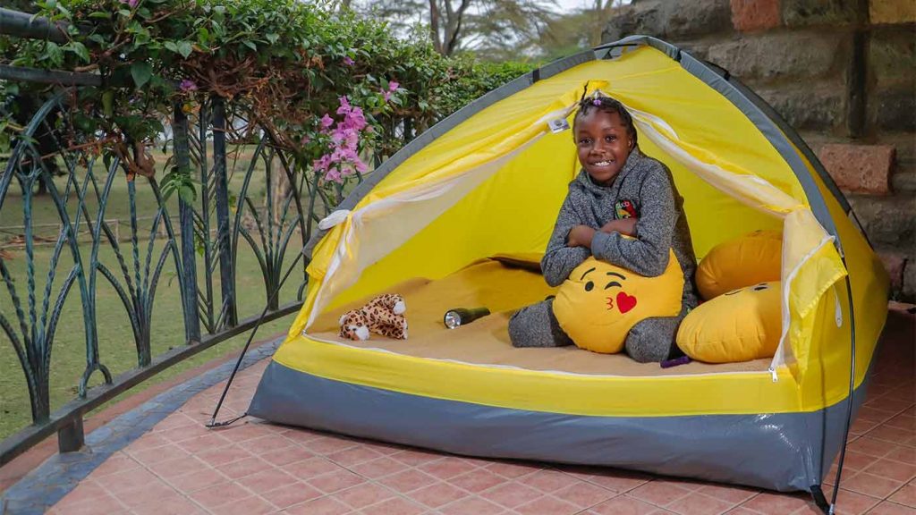 – Kids indoor camping package is KSh 3,500 per night (per tent – sleeps up to 2 children).